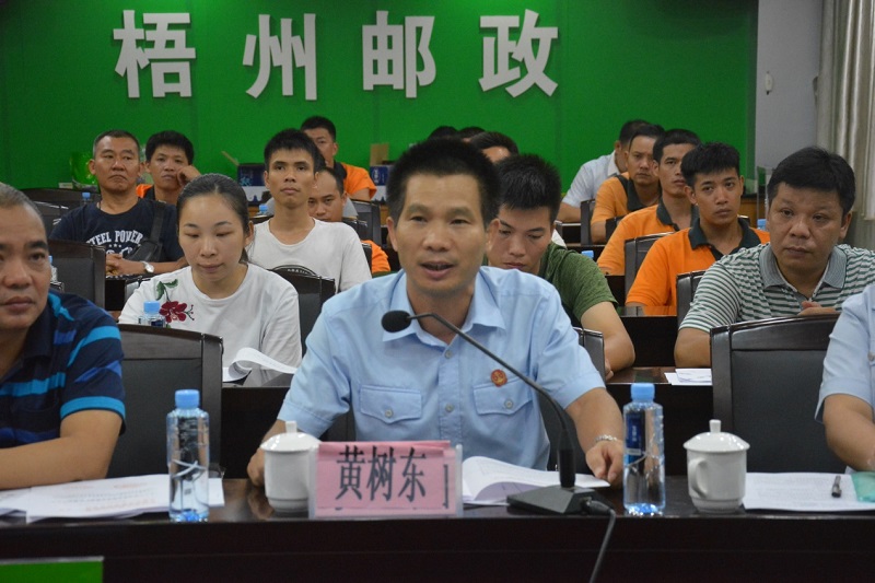 ????为进一步提升法律文书邮政专递送达妥投率,切实解决专递送达中存在的签收不规范、退回率高、送达时间长、反馈不及时等实际问题,8月10日晚,由梧州市中级人民法院牵头组织的关于邮政专递送达法律文书的现状及对策培训会在中国邮政速递物流股份有限公司梧州市分公司召开。龙圩区法院审监庭庭长、巡回诉讼服务工作组组长潘群清受梧州市中院邀请参与本次培训授课。梧州市中院诉讼服务中心主任黄树东,邮政速递梧州分公司总经理陈四海、各营业网点投递员及相关人员参加了会议。????培训会上,潘群清法官用其丰富的实际送达工作经验与法院邮政专递相关法律规定进行有机结合,清晰透彻的为参加培训学习的投递员们讲解了如何提升自身法律意识,提升有效送达率,生动形象的为投递员们还原了其成功送达的案例现场,从而让投递员们更加直观的掌握了解在邮政专递送达时的规范和技巧。自由提问环节中,投递员还就自己在实际工作中遇到的客观问题以及如何更好发挥主观能动性等事项与潘群清法官进行了沟通交流,投递员们纷纷表示此次培训受益匪浅,同时在今后的送达工作中将通过更加严谨科学的工作服务方式充分发挥出邮寄送达的优越性,确保邮递送达法律文书的规范性。