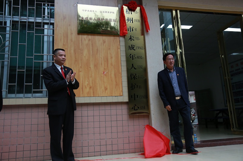 自治区民政厅社会事务处梁维平处长、伍用文副处长,梧州市民政局林桂良局长,龙圩法院张勇院长以及梧州市未成年保护中心有关工作人员出席了揭牌仪式。
