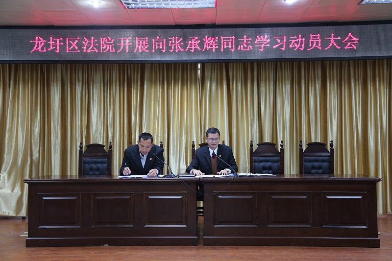11月28日,继梧州市中级人民法院向全市法院发出向张承辉同志学习的号召后,作为张承辉同志所在单位,龙圩法院争先动快,在二楼大法庭隆重召开全体干警动员部署大会,党组书记、院长张勇同志出席会议,会上,党组成员、政工科潘健华科长代表院党组宣读了《梧州市中级人民法院关于开展向张承辉同志学习活动的决定》,并对下一步开展学习活动作了全面的动员部署。