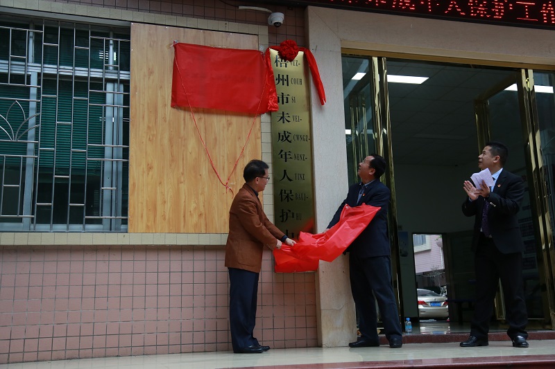 自治区民政厅社会事务处梁维平处长、伍用文副处长,梧州市民政局林桂良局长,龙圩法院张勇院长以及梧州市未成年保护中心有关工作人员出席了揭牌仪式。